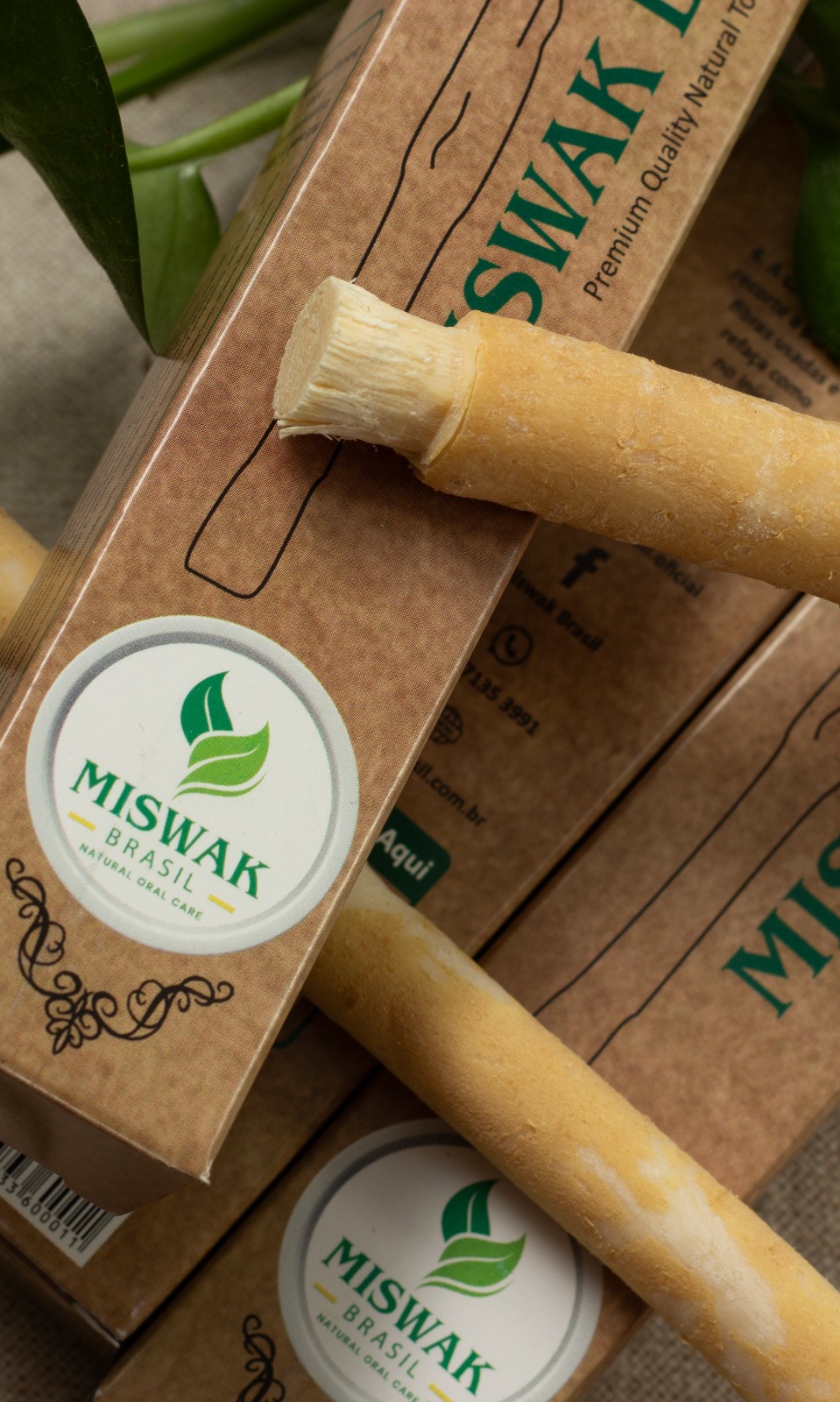 Feita a partir dos galhos da árvore Salvadora pérsica (“Arak”), a Miswak é um dos métodos mais antigos de higiene bucal, utilizada por babilônios, egípcios, gregos e amplamente difundida pela cultura islâmica. Reconhecida por suas propriedades antimicrobianas e ação anti-inflamatória, oferece limpeza profunda, prevenção do mau hálito e é 100% natural e biodegradável.
