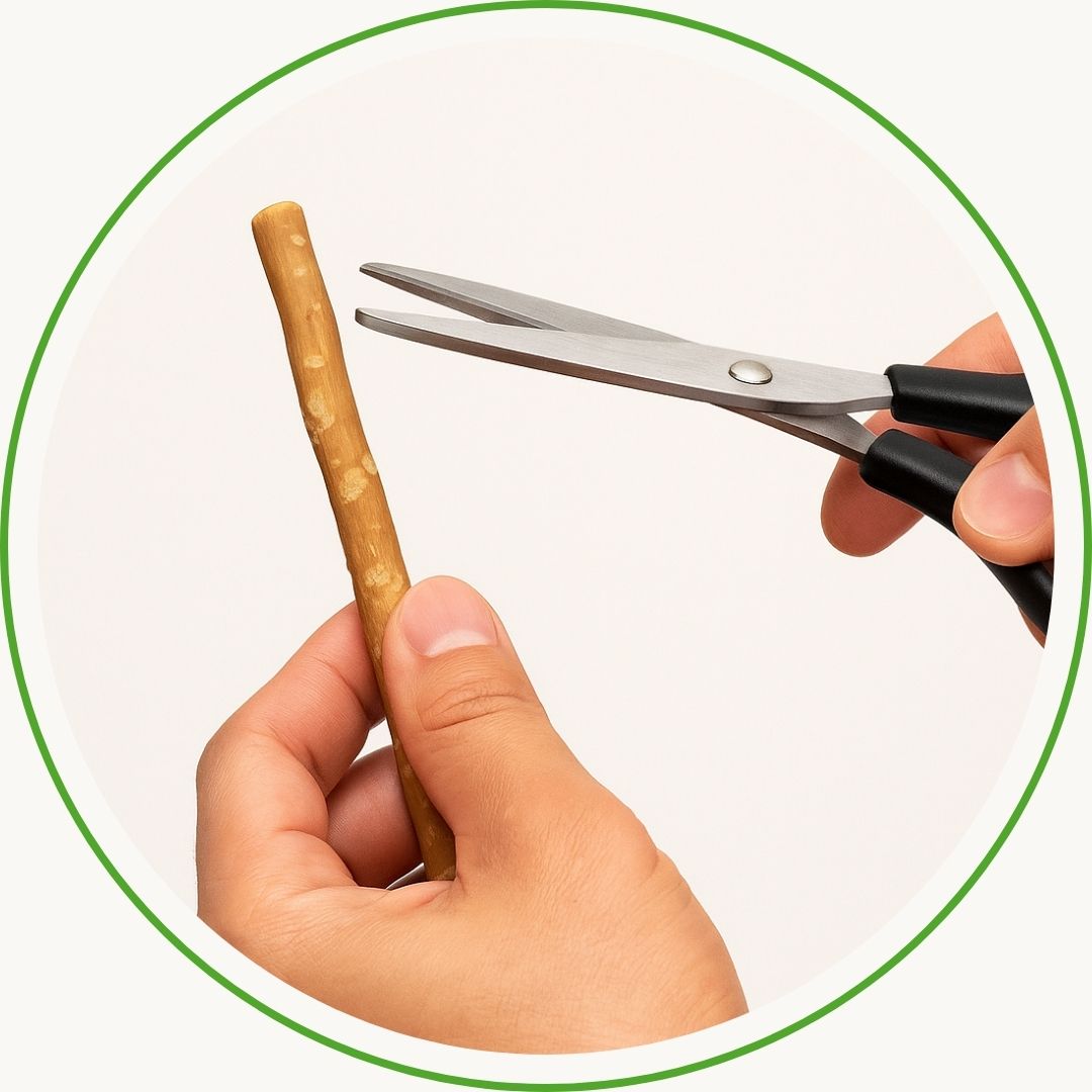 Para amolecer, mastigue as fibras e deixe a parte cortada dentro de um copo com água por 3 minutos.